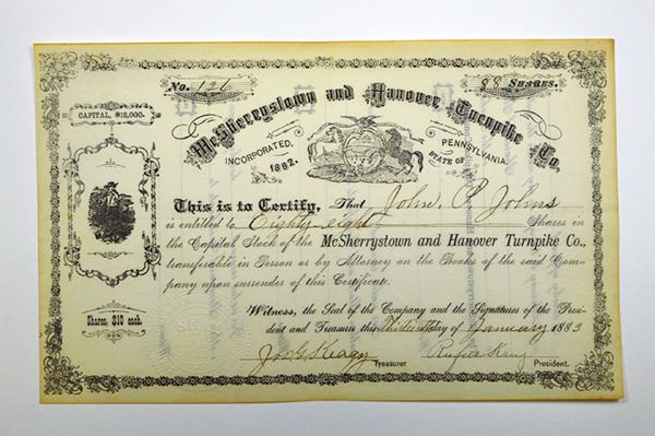 Pennsylvania. 88 Shares Capital Stock Issued Certificate, Black print on black border, State seal of Pennsylvania at center, Fine-VF condition with toning around edges.