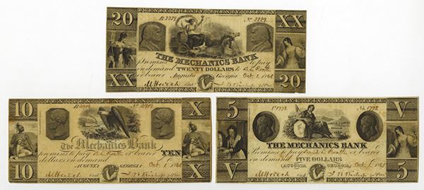 Augusta, Georgia, Lot of 3 issued Notes, all are dated 1861, Includes $5, Choice VF; $10, XF but appears AU; and $20, VF. All are printed by UBS.