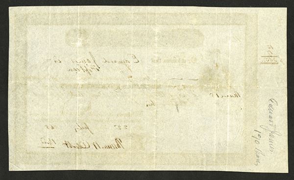 Albany, NY. 15 Shares, I/U, Black on white paper, Standing allegorical woman at left, eagle at bottom, cameo images on top, Signed by Thomas Olcott as president, VF. (From the collection of John E. Herzog)