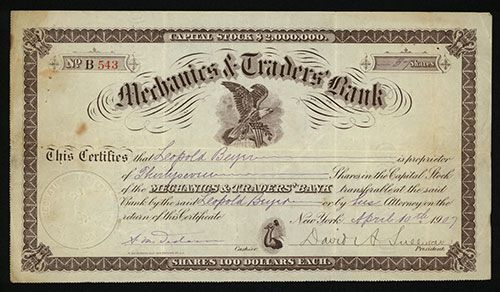 New York, 1907, 37 Shares, Specimen Stock, Bald Eagle top center, VF condition, M.katzenberg & Co.