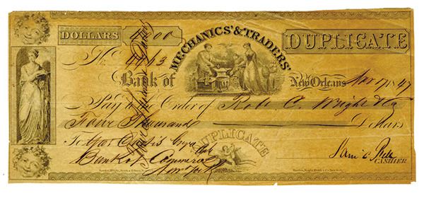 New Orleans, LA. Duplicate check for $4000 dated 1847. Fine condition., toned, RWH&E-RWH.