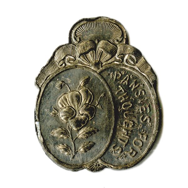 PS monogram. Pansies for Thoughts and flower on reverse. D. Lothrop & Co. Boston imprint on bottom obverse. 27x34 irregular edge.