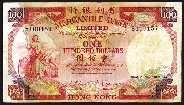 Hong Kong, 4th November, 1974, $100, P-245, Issued banknote, S/N B100157, VF condition. TDLR.