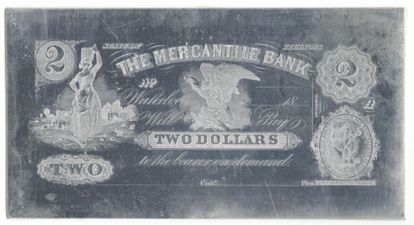 Mercantile Bank. ND (ca. 1860's). Obsolete $2 Printing Plate + Matching Proof.