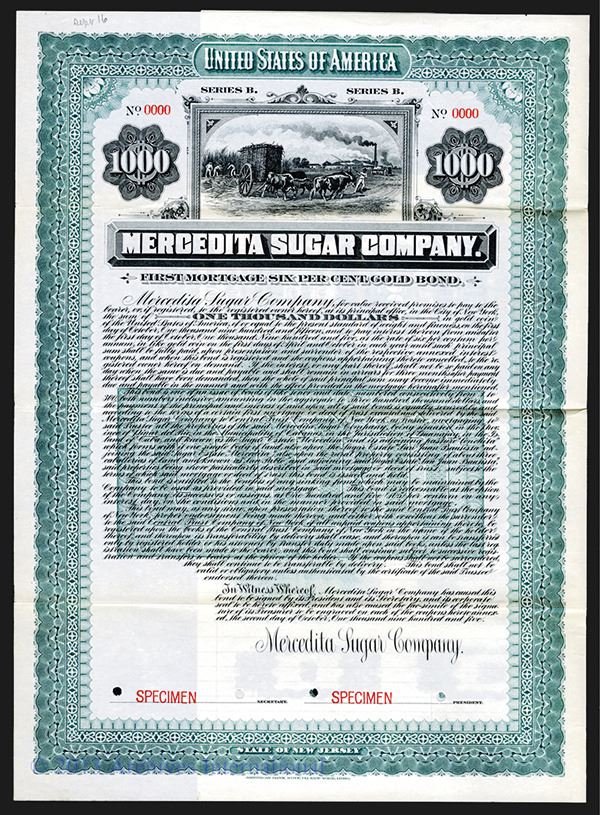 New York. $1000 Gold Coupon Bond Specimen. ABNC NY Litho. POCs. VF+