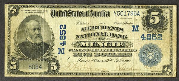 National Bank Note. Fr.#595. Napier-Thompson. Very Good-Fine, counting wear at ends; lower right corner fragile.