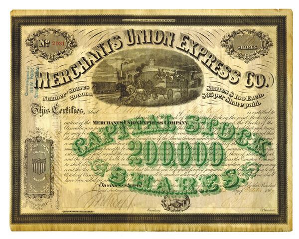 Merchants Union Express Co., 1867 Issued Stock Certificate