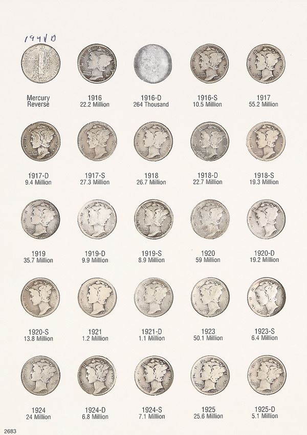 Mercury and Roosevelt Dime Collection, 1916-2021.,