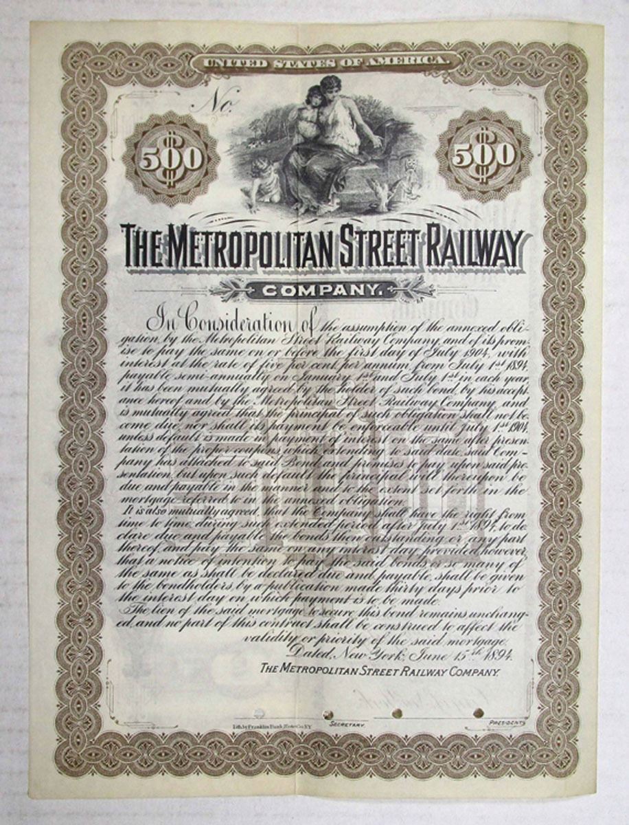 Kansas City, Missouri, 1894. $500 Gold Coupon Bond Specimen Bond, Black printing with brown border and underprint, Woman with children at top, POCs at bottom, Homer Lee BNC.