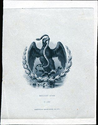 Mexico. Arms of Mexico Archival Collection (15). 1860-1914. 15 different Arms of Mexico vignettes printed on india paper. Eagle with snake in beak vignettes used on banknotes, stocks, bonds and miscellaneous security printed documents. Printers include ABNC, FBNC, CBNC and NBNC. Various colors. Mostly Unc. to Choice Unc. ABNC, CBNC, FBNC, NBNC.