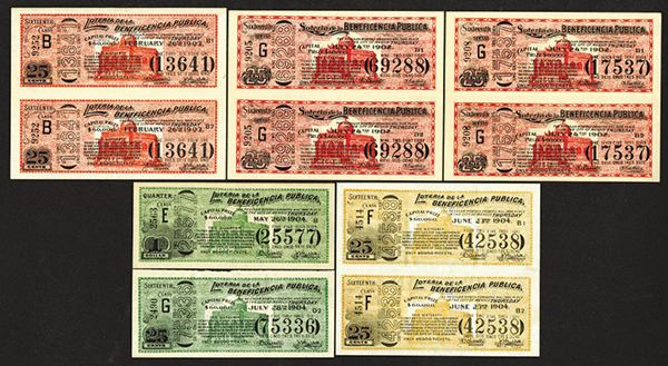 Mexico. 1902 (4, 2 pairs), 1903 (2), 1904 (4, 1 pair 2 individuals). Generally Very Fine +. 10 pieces
