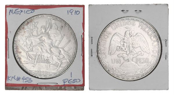 Various Rulers, a celebration of Mexican numismatic history, offering a rich array of 16 coins. It features the following: 5 Pesos (1948, KM-465; 1950, KM-466; 1952, KM-467; 1953, KM-468; 1956, KM-469; 1957, KM-470; 1959, KM-471; 1993, KM-552; 1998, KM-552), 1 Peso (1910, KM-453; 1899, KM-409; 1895, KM-409), 1 Onza (1949, KM-449a), 10 Pesos (1960, KM-476), and 25 Pesos (1968, KM-479.1; 1968, KM-479.2). This collection spans over a century, showcasing significant moments in Mexico's monetary evolution. Overall conditions vary from Extremely Fine to Choice Uncirculated, with many Uncirculated pieces. (Includes over 8 ounces of 80% silver) (16). Shipping charges apply - weight 1 lbs. (photo on web site)