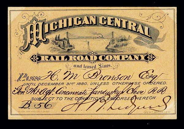 MI. Signed and issued. Western BNC. Vignette of Niagara Falls Suspension Bridge. Paper tone, formerly mounted with corner mounts.