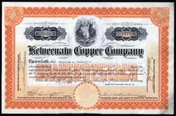 Michigan, 1928. 100 Shares Capital Stock I/U Certificate, Black print on orange border with Michigan arms at top, S/N 6858, XF condition with toning on the right border. ABNC.
