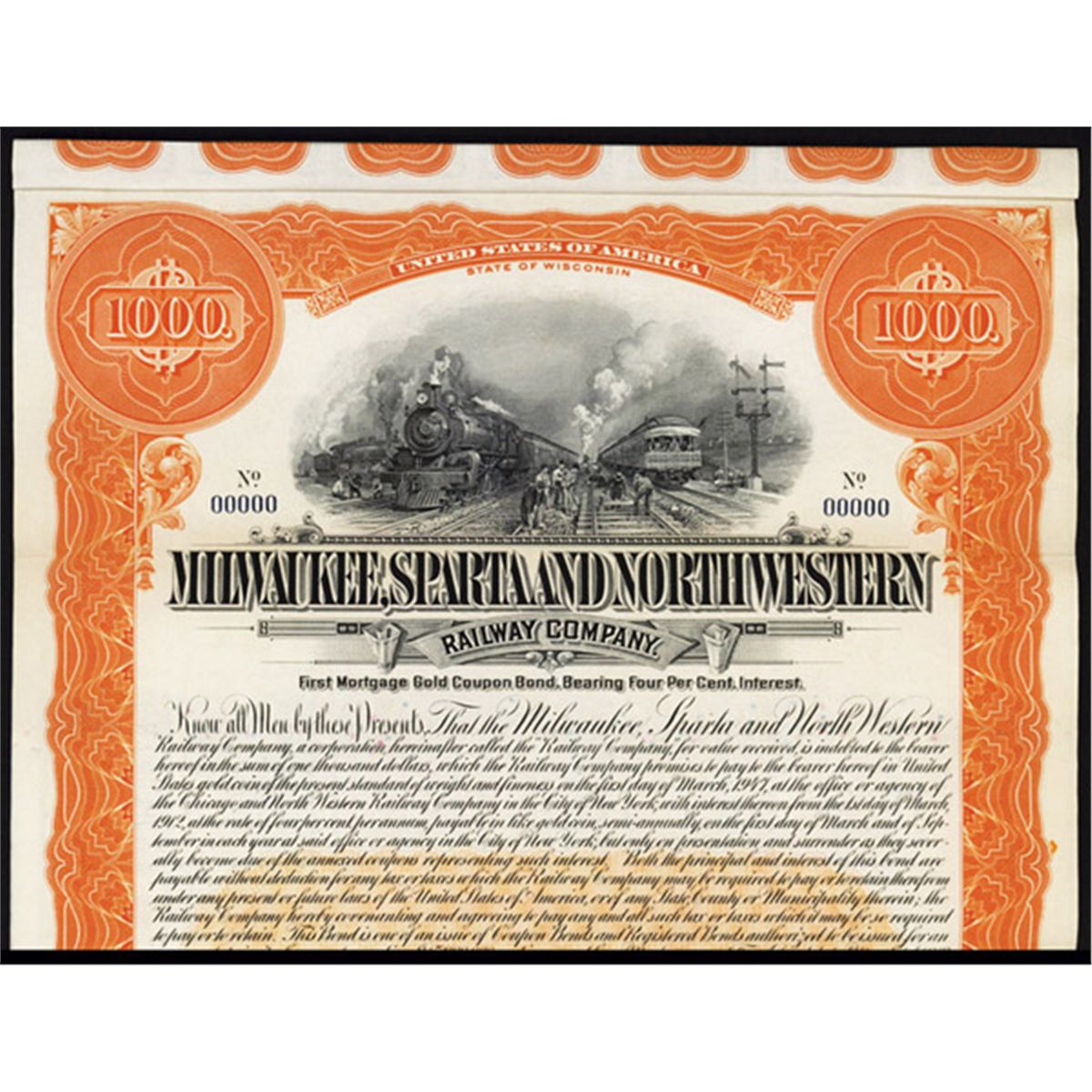 Wisconsin, 1912, $1000, Specimen bond, Trains and track workers, Orange, ABNC, POC's, XF.