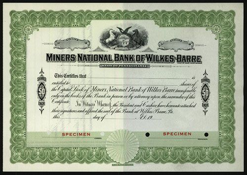 Pennsylvania, 19xx, Specimen Stock, Odd Shares, Black print on lime-green border and underprint, Two horses and state seal top center, Red SPECIMEN print and POC's, VF-XF condition, SBNC.