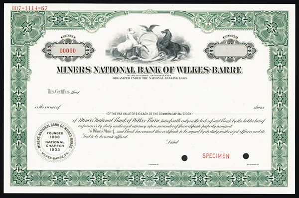 Pennsylvania, 19xx (ca 1920 - 1950), (Ch# 13852) Odd Shs., Specimen Stock, Green border with seal vignette, POC's, ABNC, XF.
