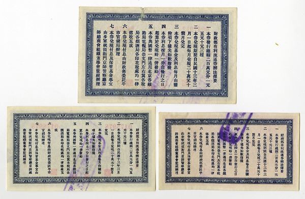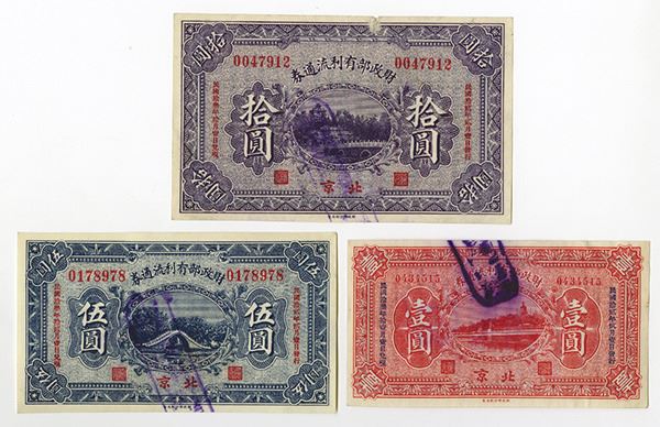 China, Lot of 3 notes, Include 1 Yuan, P-641a, Unc.; 5 Yuan, P-642, Unc.; and 10 Yuan, P-643, AU with a tear on top middle, attractive trio of notes.