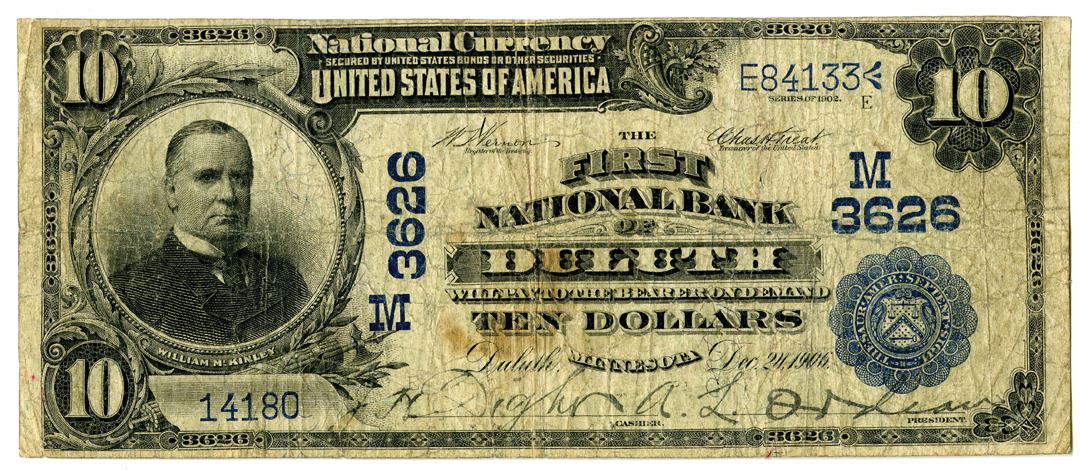 Duluth, MN. $10, Series of 1902 DB, Ch#3626, Vernon | Treat signatures, S/N 14180-E84133, Fine to Choice Fine.