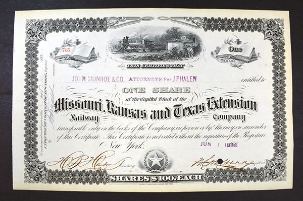 Texas. 1 Shrs Stock Certificate. Issued. Cancelled with one POC. ABNC. Edge Tone. VF+