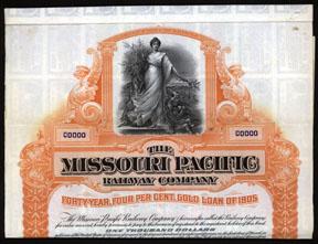 Missouri. 1905, $1,000. 4% 40-Year Gold Loan of 1905. Orange border with extremely attractive allegorical female with cherubs at her feet. International BNC. Specimen with coupons, XF. Rare and attractive bond variety.