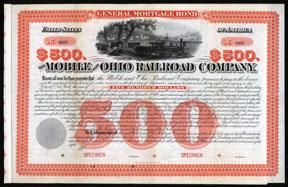 1888, $500. 4%, General Mortgage Bond. Orange-red border, locomotive passing cows and harbor scene. ABNC. Specimen, coupons, POC's. XF.
