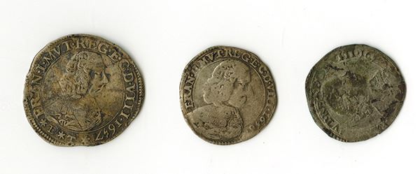 Italy, lot includes Mezza Lire, 1656, Var-789, Very Good; Mezza Lire, 1657, Var-789, Fine; and 2 Lire, 1657, About Fine. Rare coins.