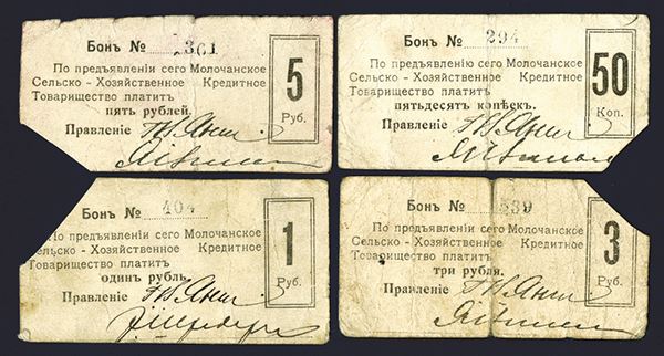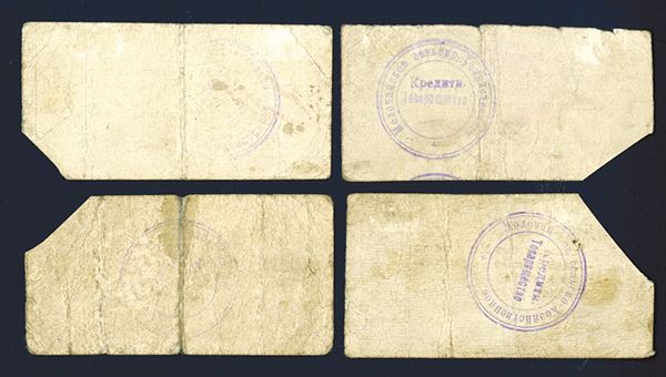 Ukraine, set of 4 local issue notes, includes 50 Kopeks, 1 Ruble, 3 Roubles, and 5 Roubles, Ryabchenko # 1369 to 1372, respectively. Generally F-VF condition. All hand-signed.