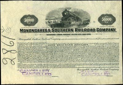PA. 1920. $50,000 Registered General Mortgage 6% Gold Bond. Proof of vignette, denomination, title and text, no border. Vignette of locomotive and workers. Unlisted railroad in Cox. Only proof found, no specimens. RBNC. Fine.