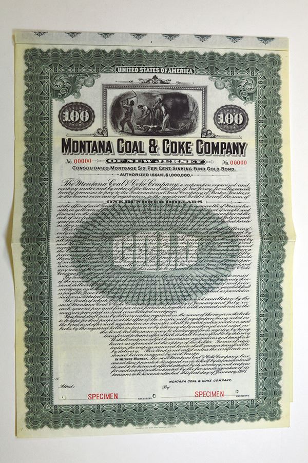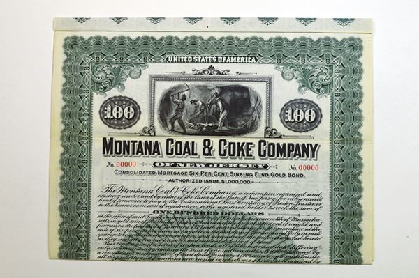 Montana. $100 Gold Coupon Bond Specimen. Franklin-Lee BNC. Very Fine +, paper tone.