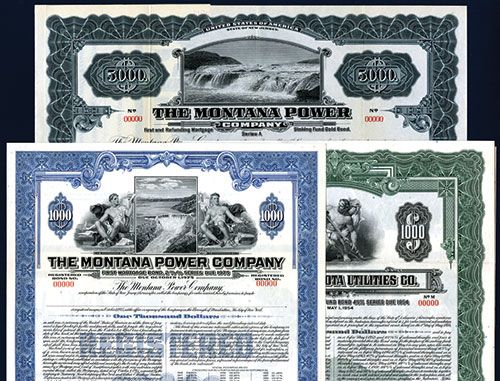 Montana, 1930's-1940's, $1000 & $5000 Denominations, Green, light blue and dark blue borders and underprint, 1)Montana-Dakota Utilities Co. 2)Montana Power Co. 3)Montana Power Co., VF condition, ABNC.