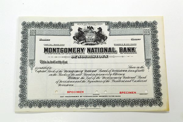 Pennsylvania. -Odd Shrs Stock Certificate Specimen. Security BNC. Extremely Fine.