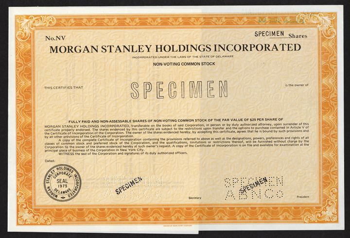 Delaware. -Odd Shares Specimen Stock Certificate. ABNC. Extremely Fine.