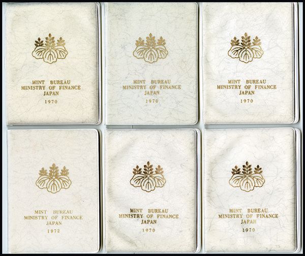 Japan. Mint Sets, 1970(5), 1972; Miscellaneous Japanese copper, copper-nickel and silver minors, mostly attributed, with a few South Korean examples included. These average VF-EF, though there are occasional BU examples noted. [100+]