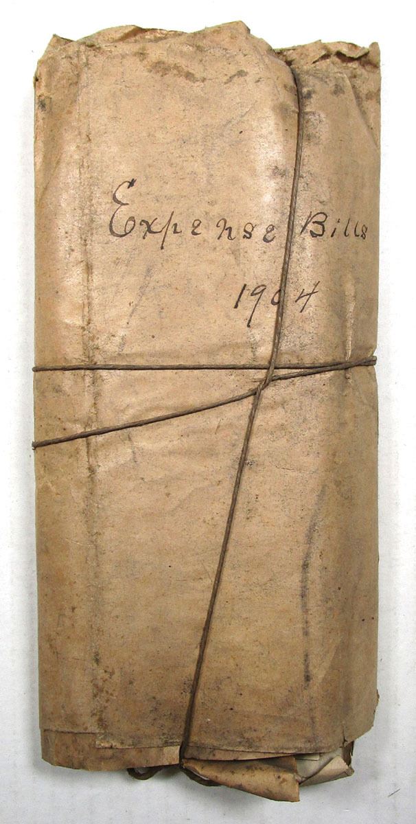 Surprise Lot that can include Checks, letterhead, bill heads, drafts, exchanges and other pieces of ephemera, unsearched and untouched for over 100 years. Wrapped with paper and tied with string as it was stored over 100 years ago and not touched.