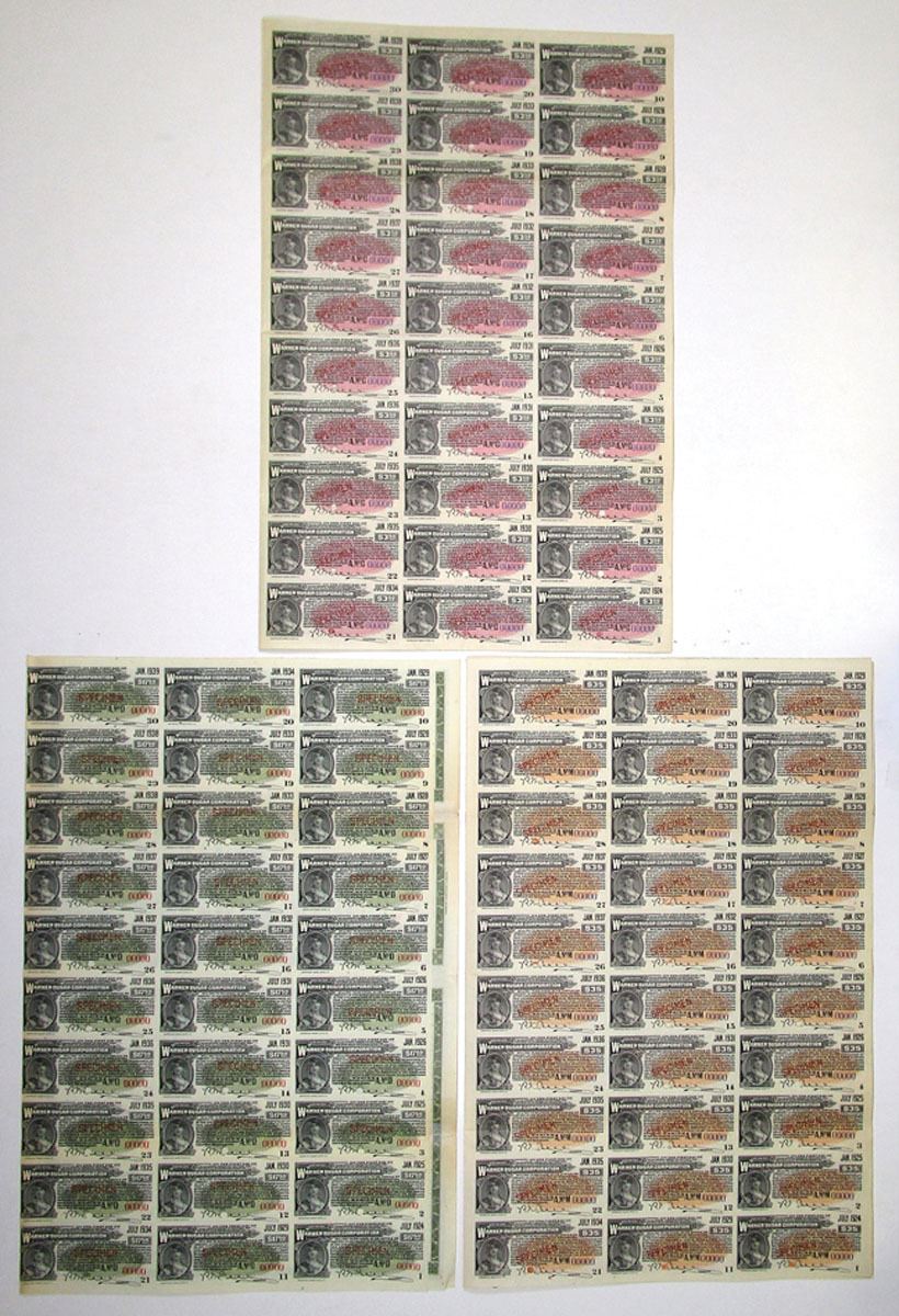 New Jersey, 1924. Lot of 3 Specimen Bonds, all are 7% First and Refunding Mortgage Sinking Fund Gold Coupon Bonds, including: $100 with red border; $500 with green border; and $1000 with orange border, all featuring the same vignette of the Warner Sugar Corp. logo flanked by allegorical women at top center. All have Specimen overprints and POCs, and range from VF to XF condition. ABNC. (3). Sold "AS IS" no returns accepted.