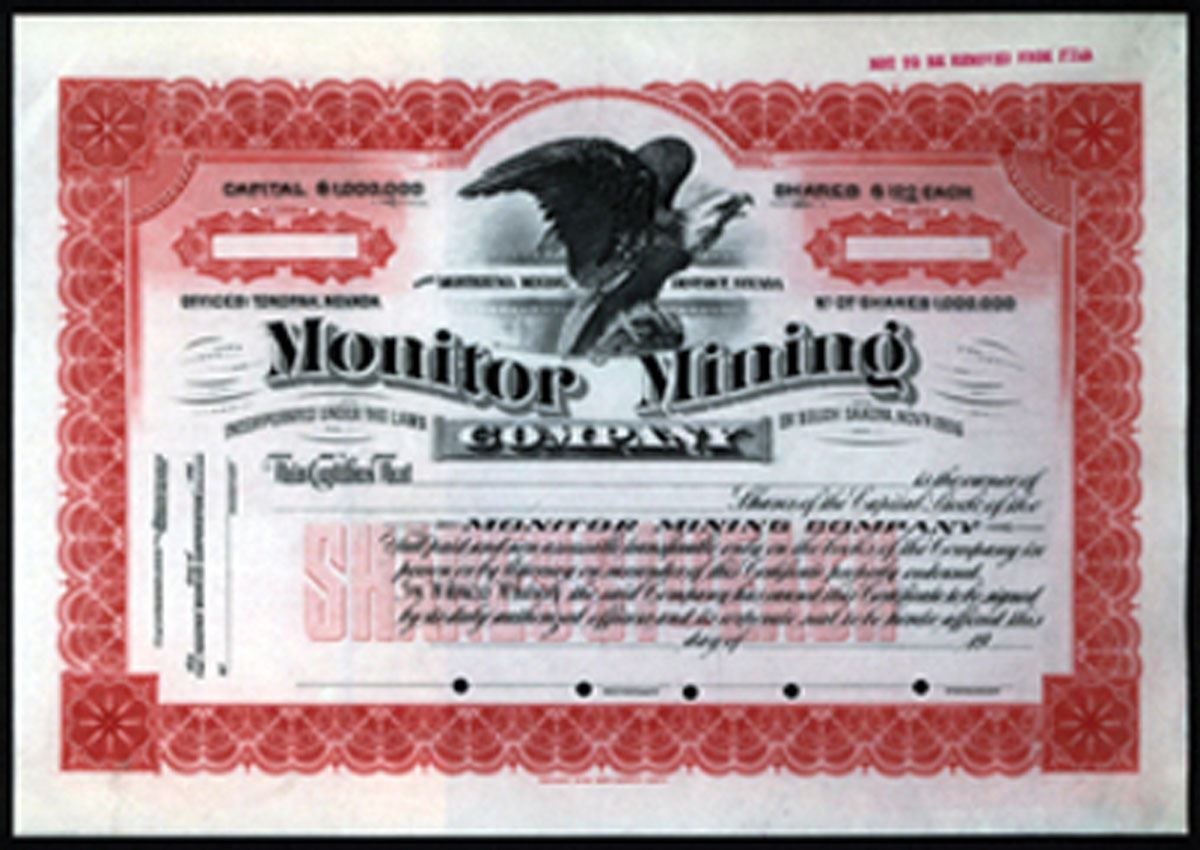 Tonopah, Nevada. 19xx (ca.1900-1920), Shares, Eagle over title, Red, SBN, POC's, XF. Montezuma Mining District, Nevada. Extremely rare as a specimen.