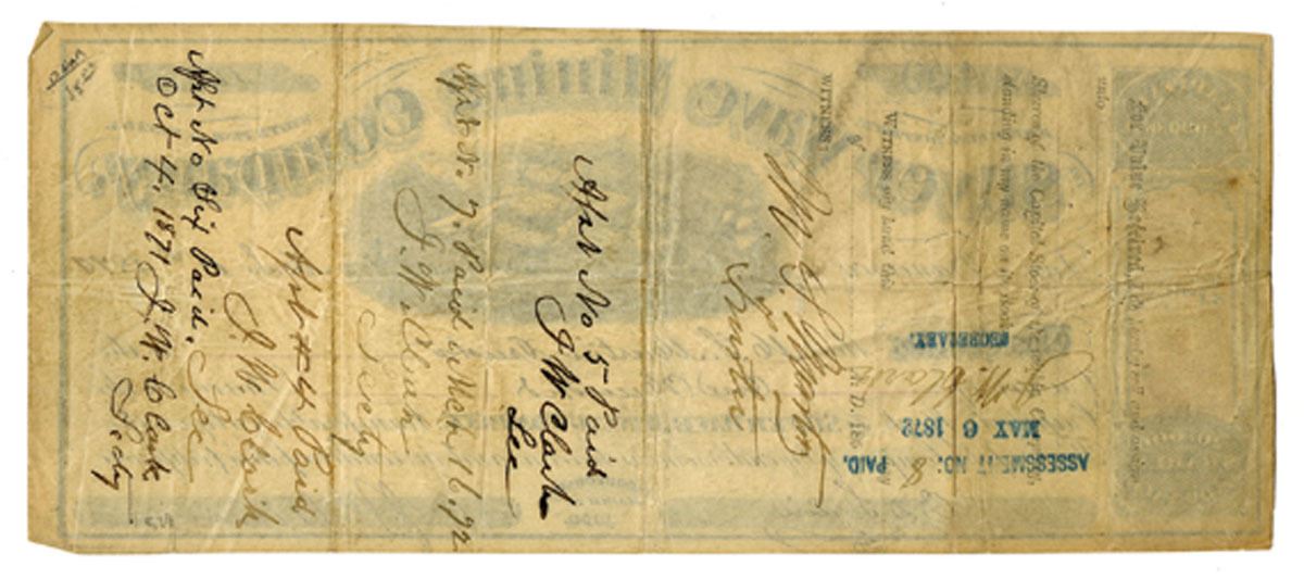 Nevada (Offices in San Francisco, CA), March 11, 1870, Silver Wave Mining Company, 100 shares, I/U stock certificate, S/N 199, issued to M.S. Martin, printed on light gray paper with bold black lettering and simple black border; features a large central vignette of a sailing ship at sea, with a 25-cent U.S. Revenue stamp affixed at left. The company operated in the White Pine District, Nevada, during the silver rush period of the 1870s. VF to Choice VF condition or better.