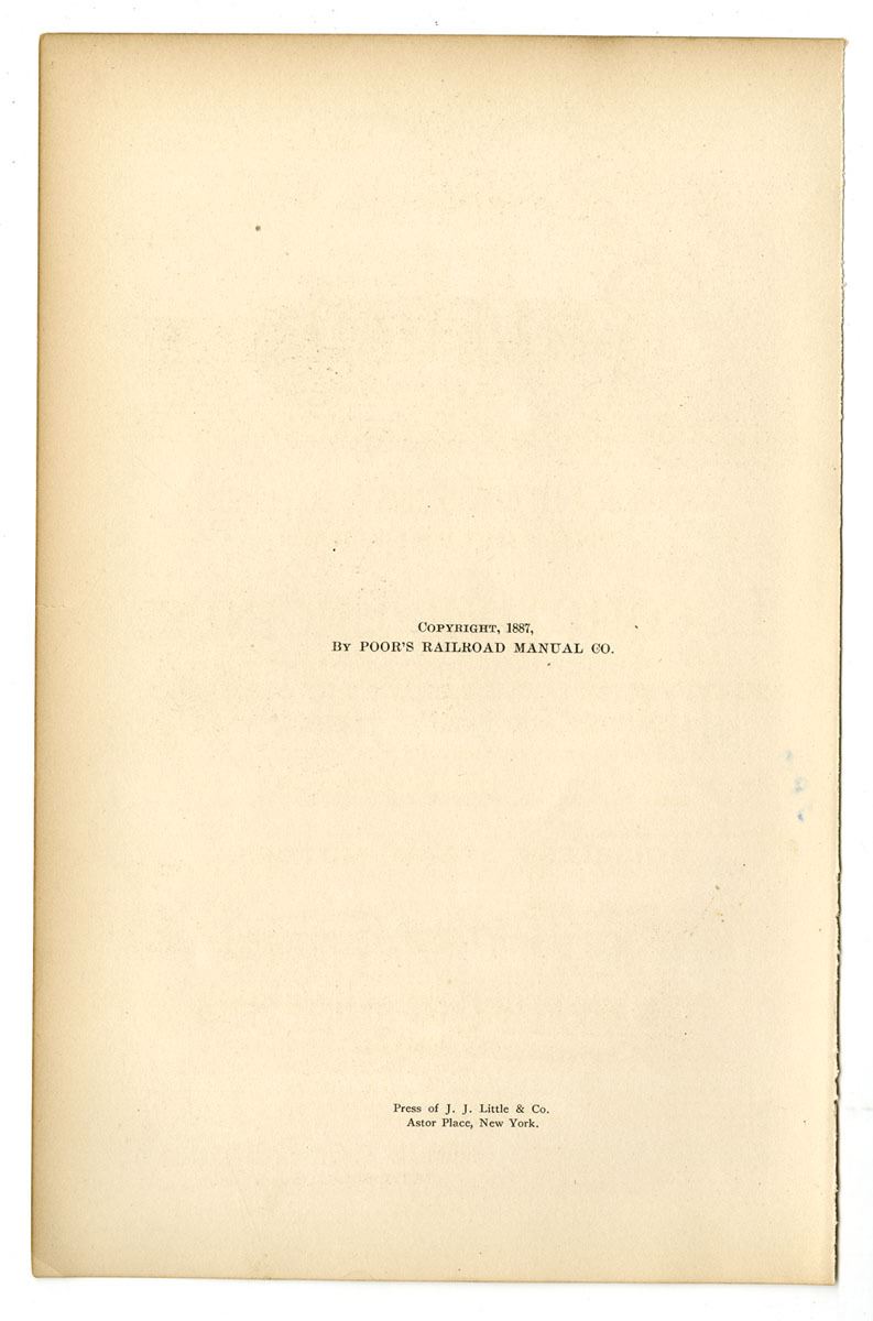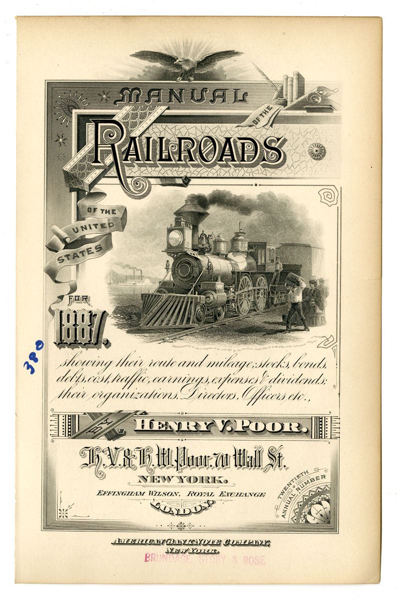 New York, 1887. Original title page from Poor’s Manual of the Railroads of the United States, 1887 edition. VF to XF condition with hand written "380" on left in ink. ABNC..