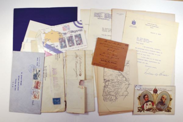 NY. Wm S. Pennington 1814 NJ Governor, letter with NY and NJ Postmark. Splitting at folds; Signed business cards, letters, and envelopes from important folks without their letters. Plus some Revolutionary War battle maps removed from a book. Over 25 pieces.