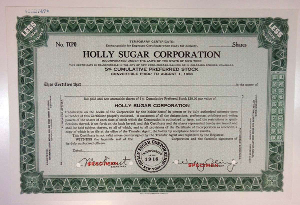 Holly Sugar traces its roots back to 1905 in Holly, Colorado, and was a company formed from eight beet-sugar processing plants. In 1989 Imperial Sugar merged with Holly Sugar Corporation to form the Imperial Holly Corporation, a processor of both cane and beet sugar.