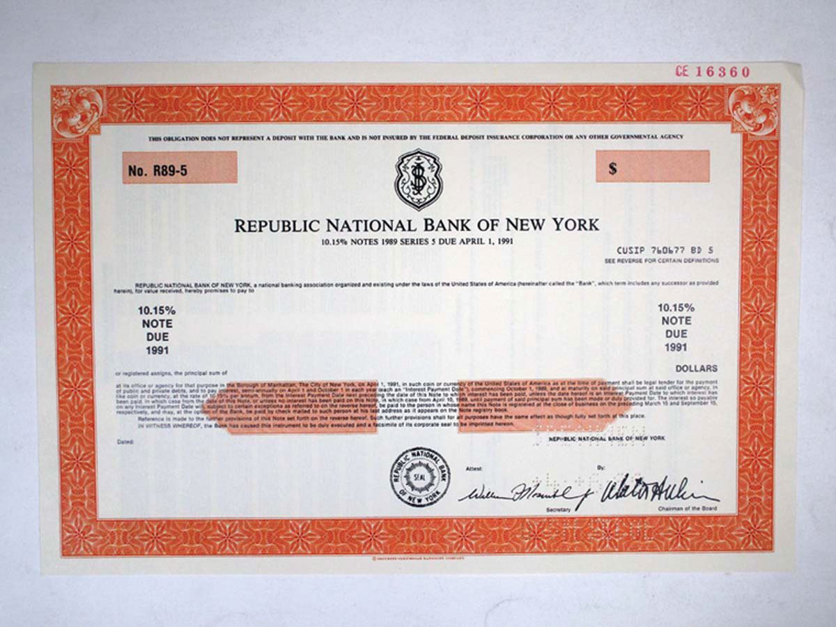 New York. Republic National Bank Of New York operates as a bank. The Bank offers saving and current account, investment and financial services, online banking, mortgage and non-mortgage loan facilities.