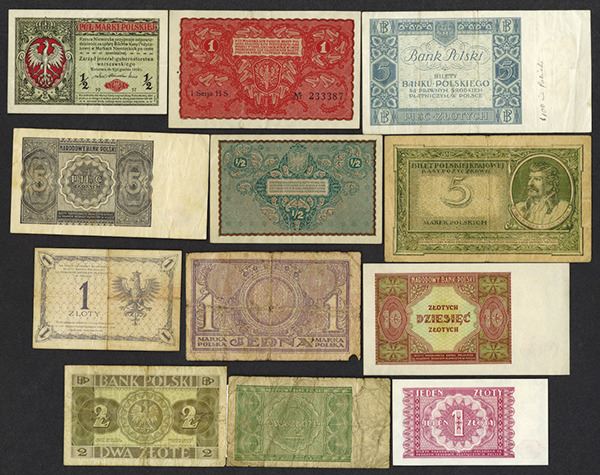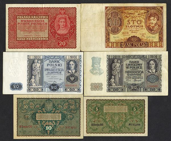 Poland. 1/2, 1, 5, 10, 20 Marek; 1, 2, 5, 10, 20, 100 Zlotych. Mostly Very Good, a few better. 20 pieces.