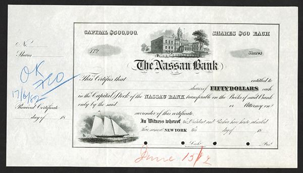 New York. New York. June 15 and 17, 1882 Unique Approval Proof, City Hall at top center, yacht America at lower left. ABNC black plate production proof with red and blue crayon pencil date approvals. POCs. As made XF+ with one light vertical fold. Rare and desirable. ABNC.