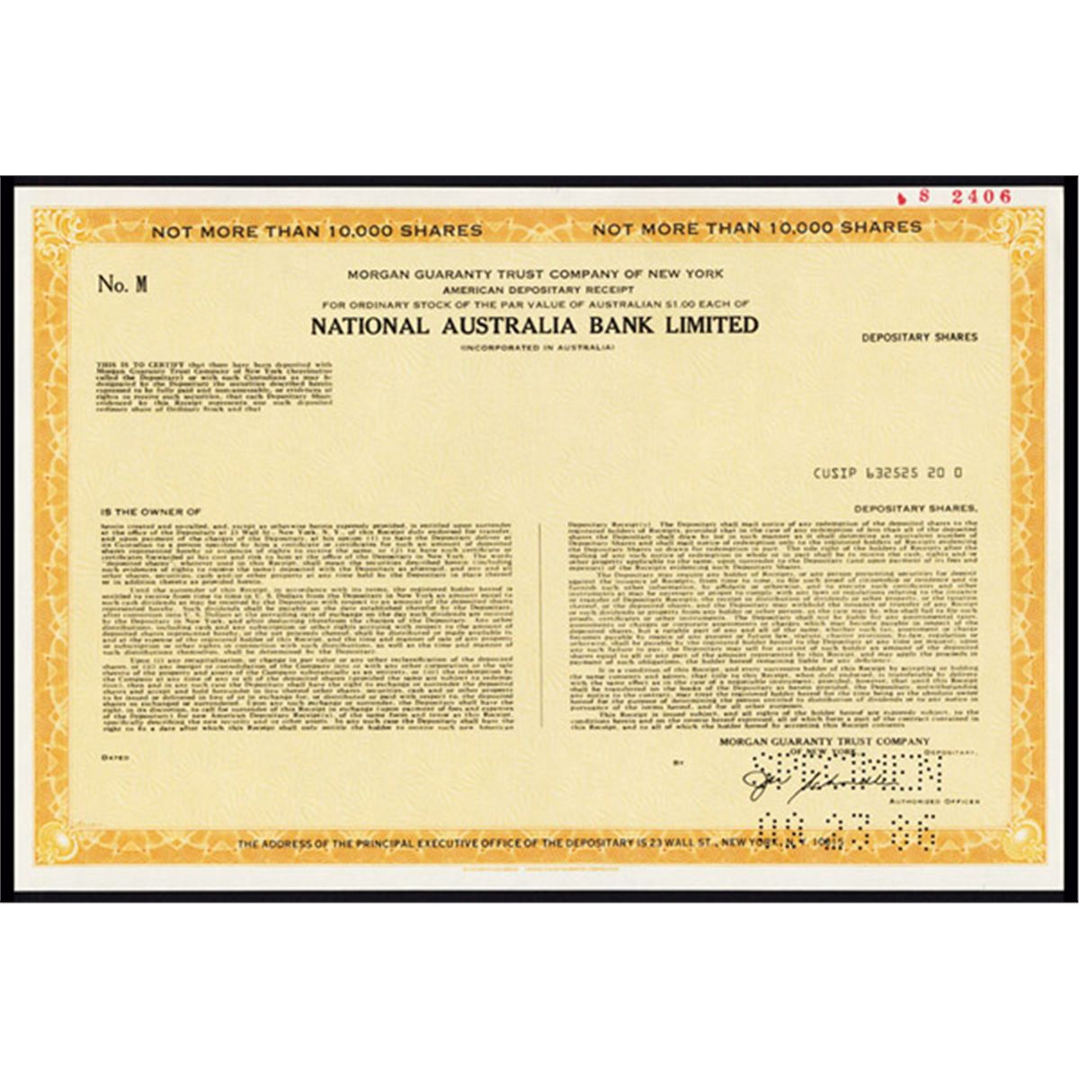 Australia, 1986, Morgan Guarantee Trust Co. of New York American Depositary Receipt for Ordinary Shares, Specimen, Orange, #M, Pin cancels, XF.
