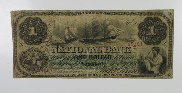 Paterson, NJ. $1, Jan. 2, 1863, Wait 1854, R-7. VG with small edge faults. NBNC.