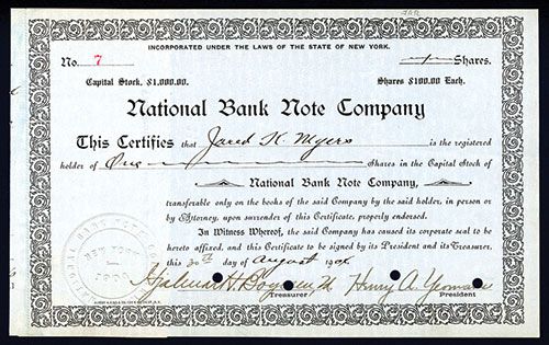 New York, 1904, Issued and Cancelled Stock, 1 Shares, #7, Black print with ornate black border and no vignette, POC's, VF condition, Albert B. King & co.