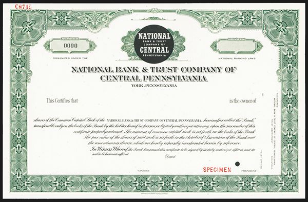 Pennsylvania, 19xx (ca 1920 - 1950), Odd Shs., Specimen Stock, Green border with no vignette, POC's, ABNC, XF.