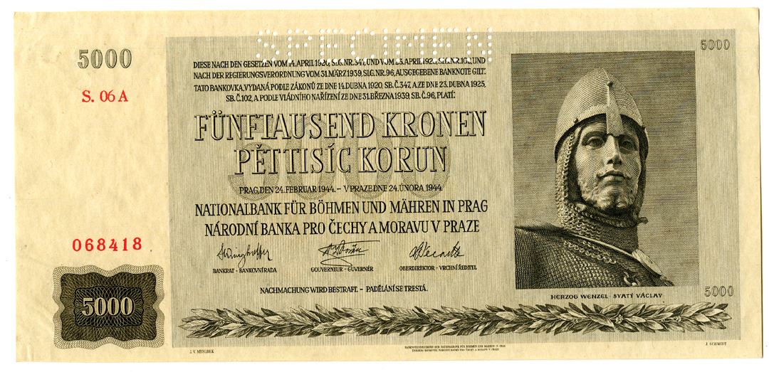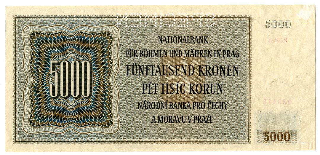 Bohemia & Moravia. 1944. 5000 Korun, P-17s, Specimen banknote, Gray, VF-XF.