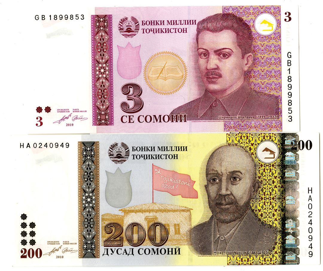 Tajikistan. 2010. 3 and 200 Somoni, P-20; 21, issued banknote pair, Unc (2).